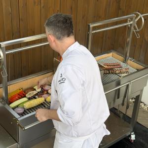 Unlike conventional backyard grills, the Infinity Argentine XL is built to deliver the distinctive experience of open-fire asado cooking. Its dual independent lifting grates allow users to manage multiple temperature zones at once, while the V-shaped grate system channels grease away from the fire into removable drip pans to help reduce flare-ups. The integrated brasero allows cooks to create embers to the side and move them beneath the grates for the controlled, wood-fired flavor associated with traditional Argentine grilling.